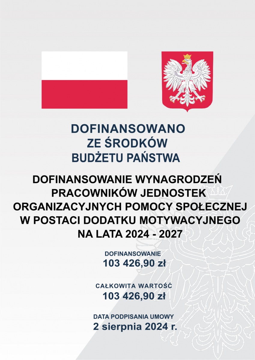 Gmina Jeżowe otrzymała dotację celową z budżetu państwa w ramach rządowego programu "Dofinansowanie wynagrodzeń pracowników jednostek organizacyjnych pomocy społecznej w postaci dodatku motywacyjnego na lata 2024 - 2027" na 2024r.